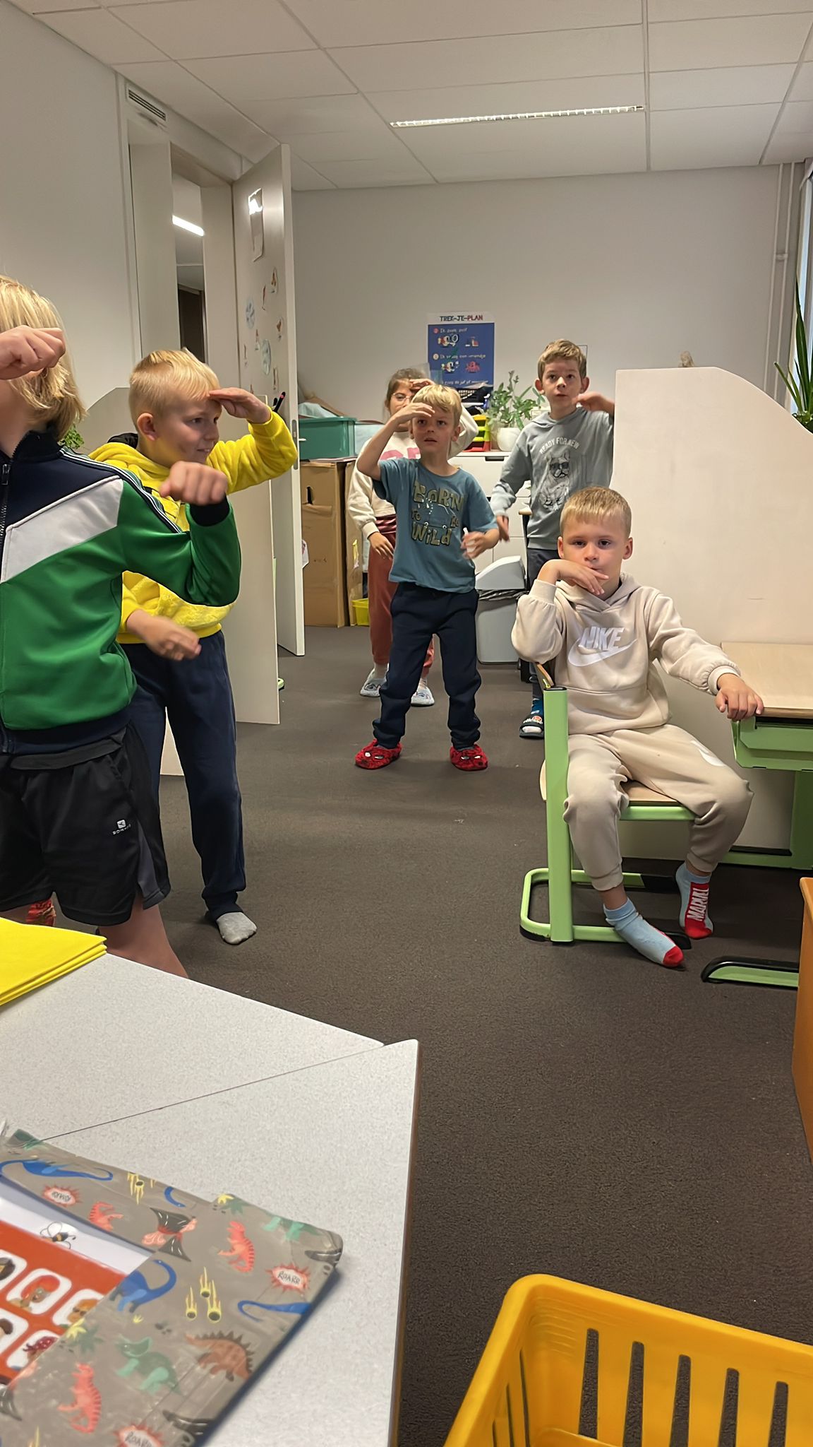 Bewegensdagje vandaag! Flink werken! Bewegingstussendoortje: in de ruimte! In de namiddag: bewegingsloop.